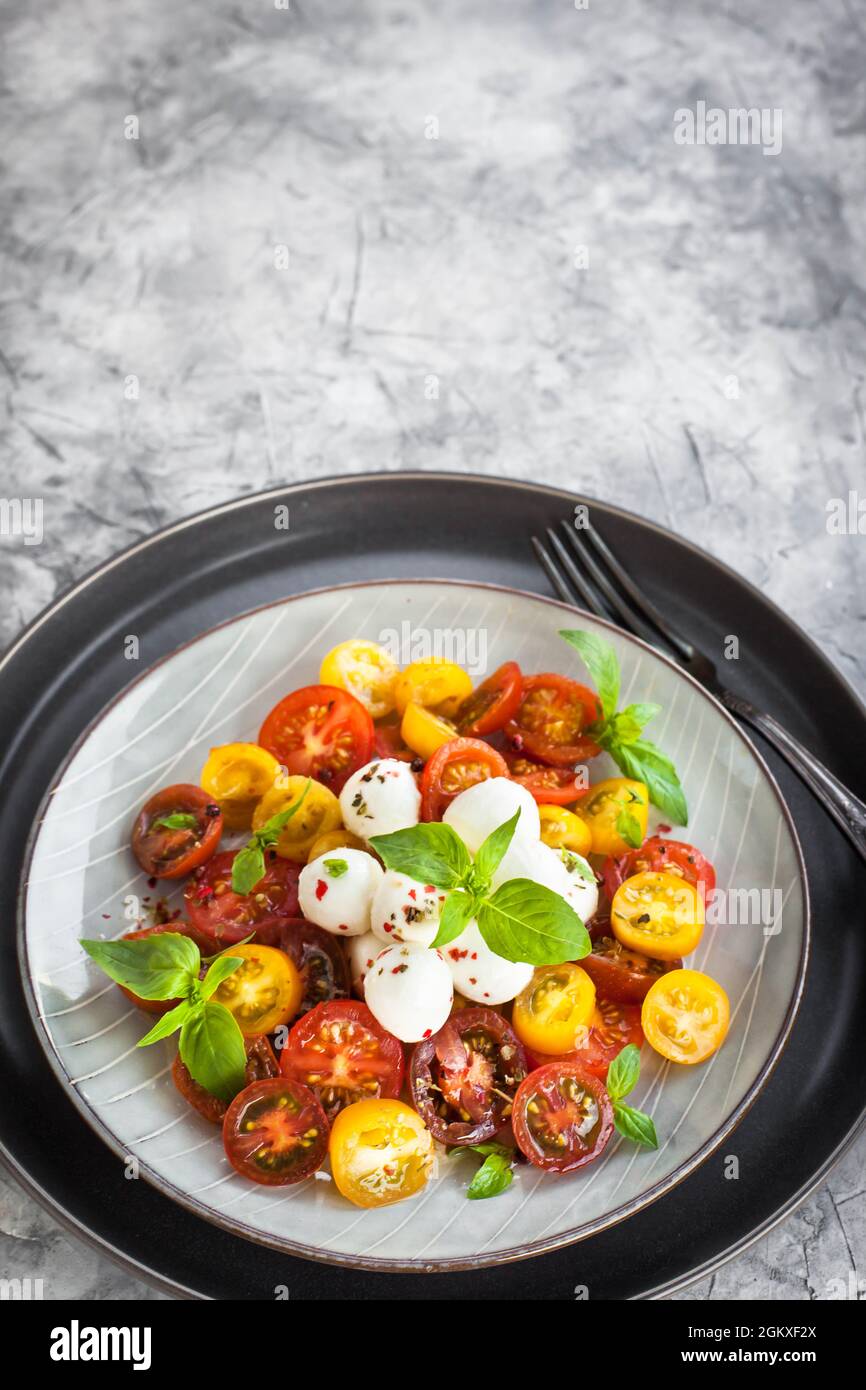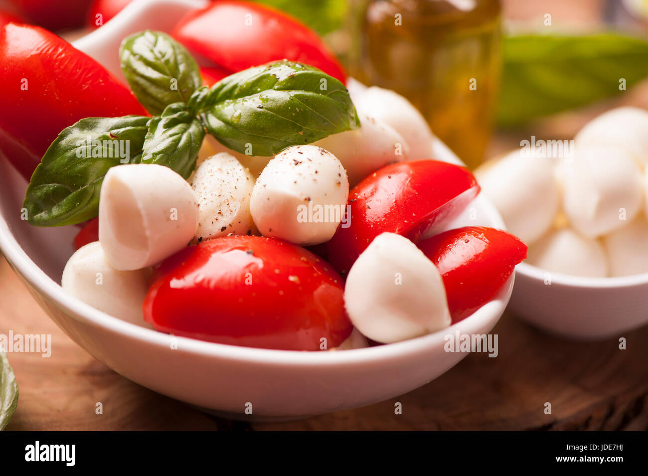 Caprese Salad With Baby Mozzarella Cheese Stock Photo Alamy